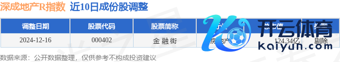 近10日内深成地产R(471001)指数成份股作念了挽回,剔除了1只股票。
